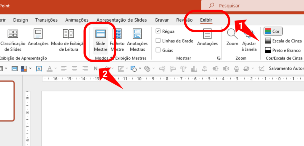 No menu suspenso, clique em “Slide Mestre”.