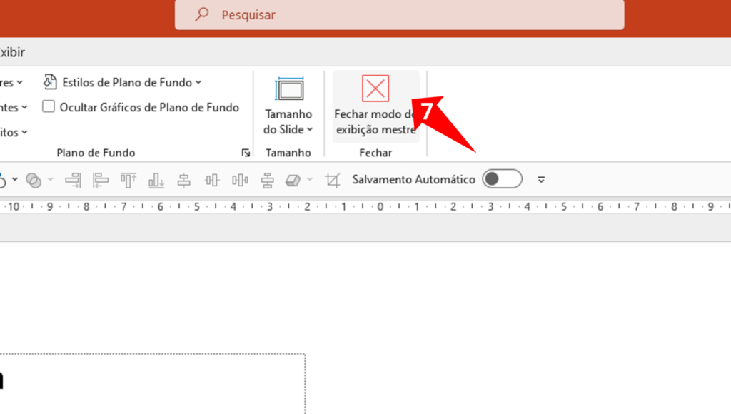 Passo 7: Feche o Slide Mestre clicando em “Fechar Modo de Exibição Mestre”. Agora você está de volta à vista normal da sua apresentação.
