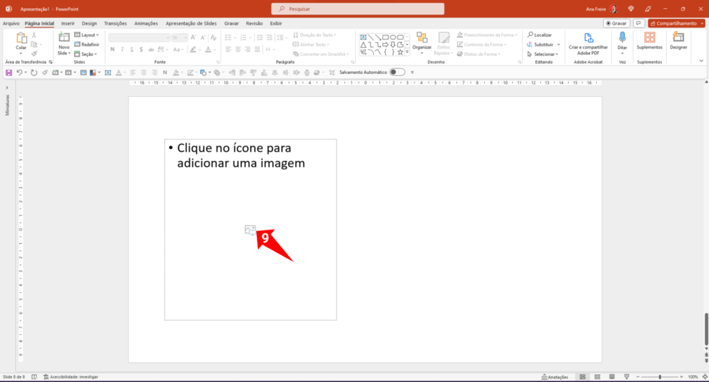 Pronto! Agora você tem um espaço reservado para imagem em sua apresentação do PowerPoint, e você pode facilmente inserir imagens seguindo os passos 9 e 10.